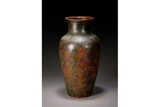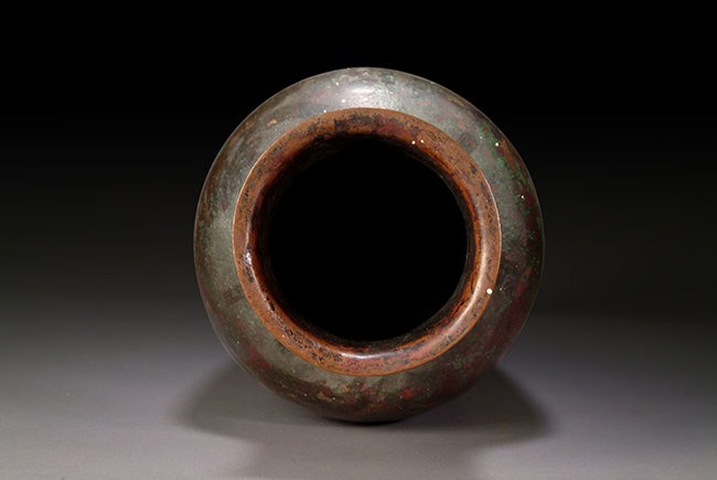This large sized bronze vase has Chinese characters around the body, which were done by different people. The vase itself is in the ancient style. H: 16 3/4 in ( 42 cm), D: 9 in ( 23 cm).
