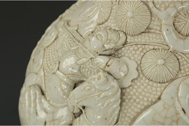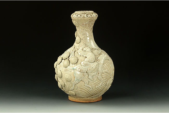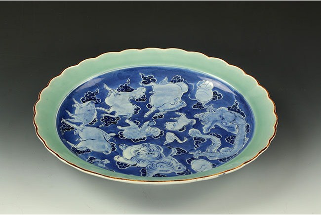 This set of porcelain wares consists of a bottle, a bowl, a plate, and a jar. The items are differently colored. D: 14 3/4 in (38 cm), H: 2in (5cm); W: 8 in (20cm), H: 11 1/2 in (29cm); W: 8 1/2 in (22cm), H: 14 in (36cm); D: 7 in (18 cm), H: 3 in (8cm)