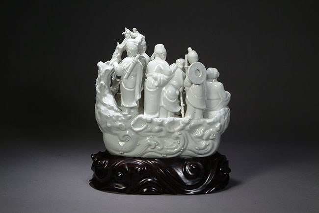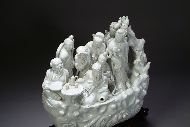 This very beautiful White porcelain artwork of the Chinese Eight Immortals crossing the ocean is a well-known legend in China. The artwork itself is very vivid. H: 13 in ( 33 cm), W: 11 in ( 28 cm).