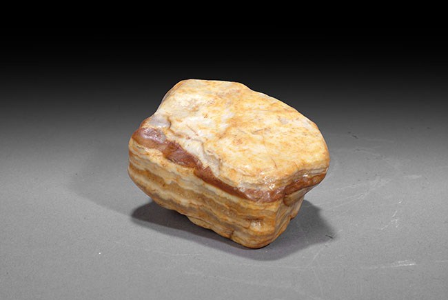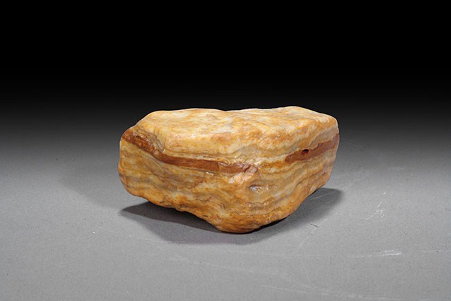This bacon pork belly meat-like stone is very unique for it is naturally formed by stone. It is considered to be good fortune by collectors. L: 4 in (9.5cm), H: 2 in (5cm).