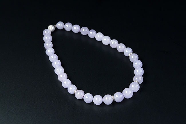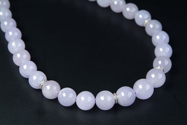 The necklace is 14-12mm Lavender Jadeite 16 inch and 0.50 carat Diamond Natural "A" Jade 18K W