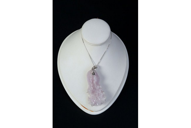 This gorgeous pendant is made from 2 1/2 inch x 1 inch NATURAL LAVENDER JADEITE and 0.90 carat Diamond 18k Natural “A” Jade and is with Jewelry Testing center Certificate