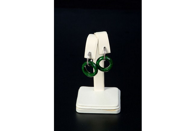 A PAIR OF Natural “A“ Jade EARRINGS 6.5mm round jade earring and 1.19 carat Diamond and 18k w