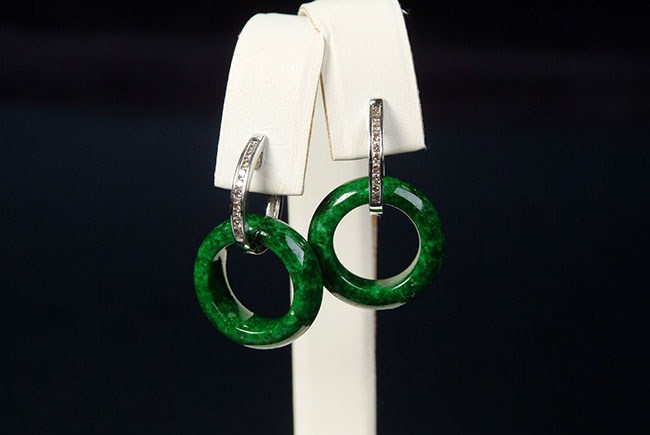 The Natural “A“ Jade earrings are 6.5mm round and has 1.19 carat Diamond and 18k white gold