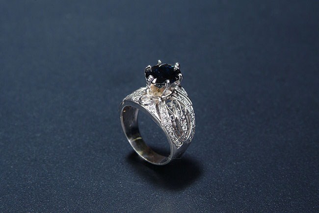 The center is 2.00 carat natural sapphire and 0.886 diamond and 14 k white gold. If the ring size is not fit please provide your exact US size or inside diameter of the ring