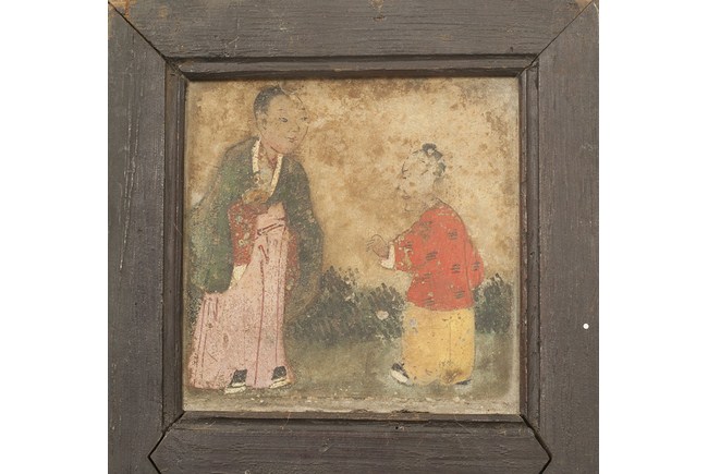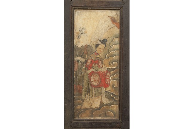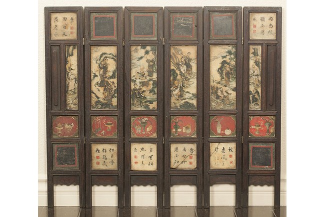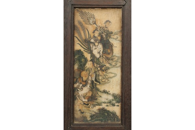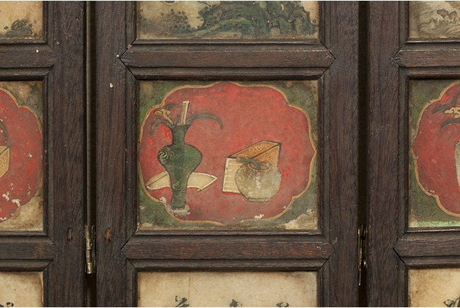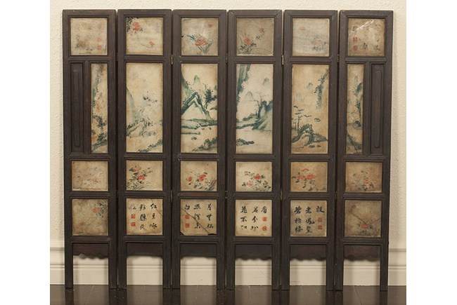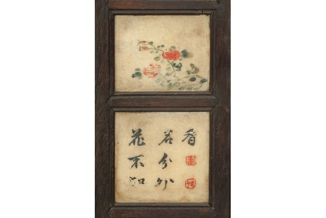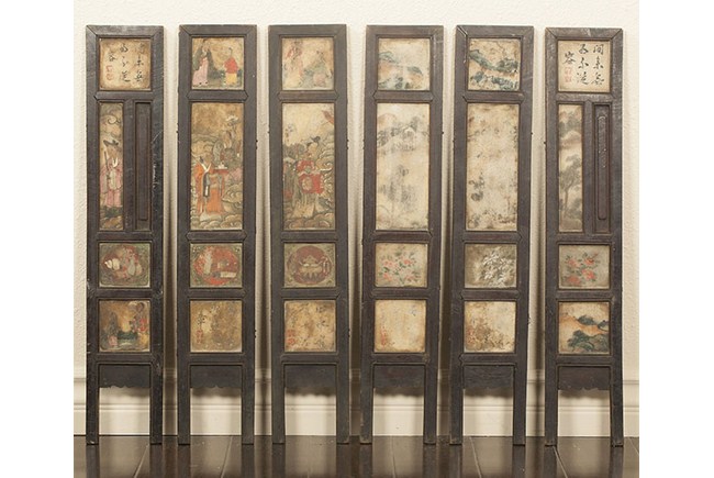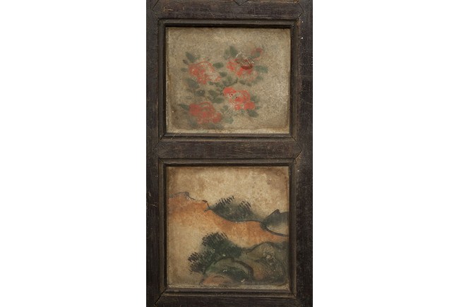 Each small screen was made of marble with paintings, encased in wooden frame. When linked together, the screens depicts scenes of people, garden, mountains, and rivers. L: 25 in ( 64 cm) W: 4 1/2 in ( 12 cm)