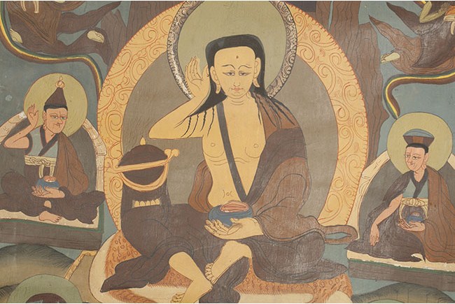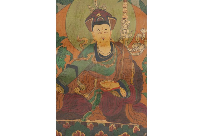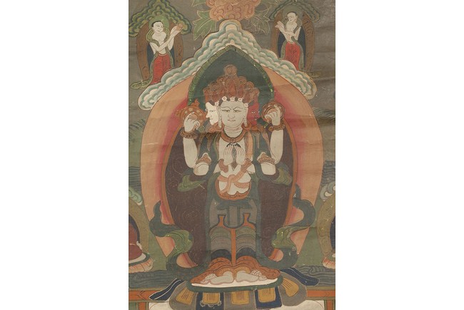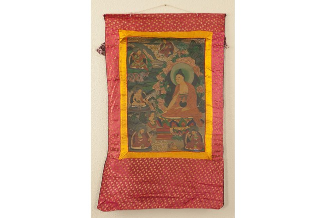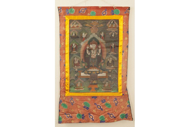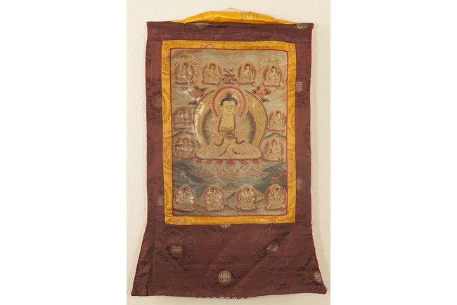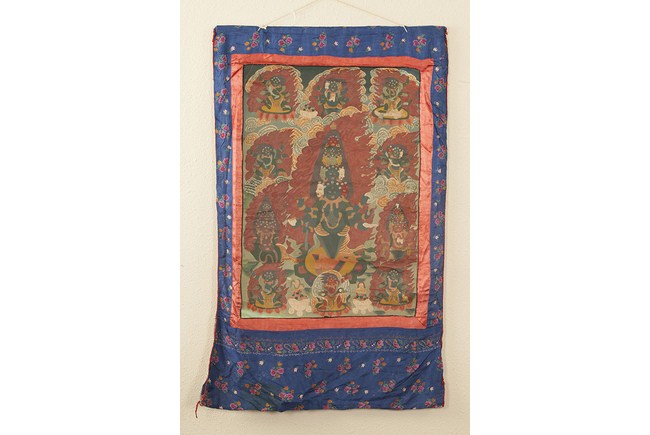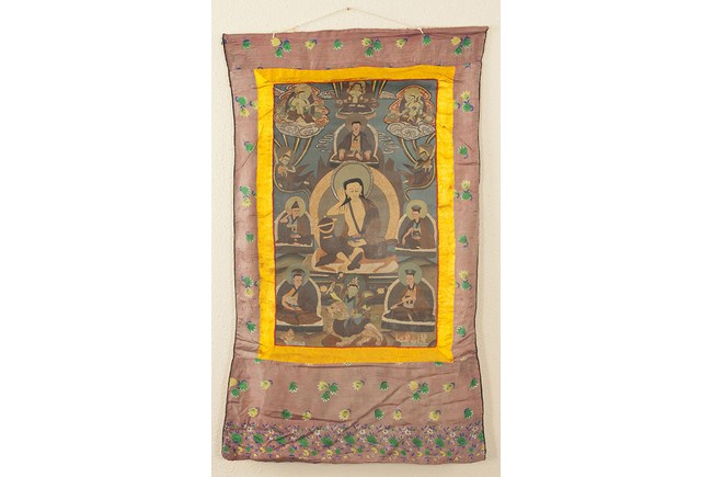 This group of six well-stitched Thangka consists of different deity figures all sitting down and praying. Qing Dynasty. L: 36 in (91 cm) W: 25 in (63 cm)