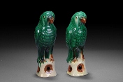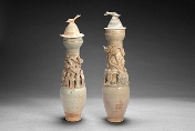 宋 綠釉穀倉瓶 一對 (有殘缺)
