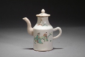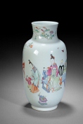 A 'Famille Rose' decorated vase with a fair lady and child.