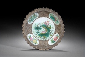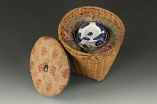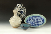 瓷器四件(盤子、碗、白色瓶子、青花蓋罐)A