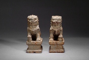 A pair of Chinese iron guardian lions "Foo Dogs"