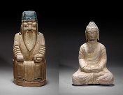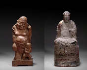 布袋和尚 與 木雕佛像 (底部有裂痕)