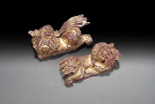 金漆木雕麒麟 (一對)(底部有裂痕)
