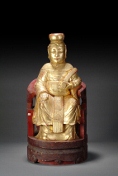 金漆木雕漢朝服飾宰相 ( 下部有裂痕),金漆木羅漢佛像有座椅 (胸前有裂痕),金漆木雕人物有座椅 (胸前腹部有裂痕)