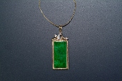 1.15 inch x 0.5 inch "A" jade and 0.39 carat Diamond and 18k Y pendant
