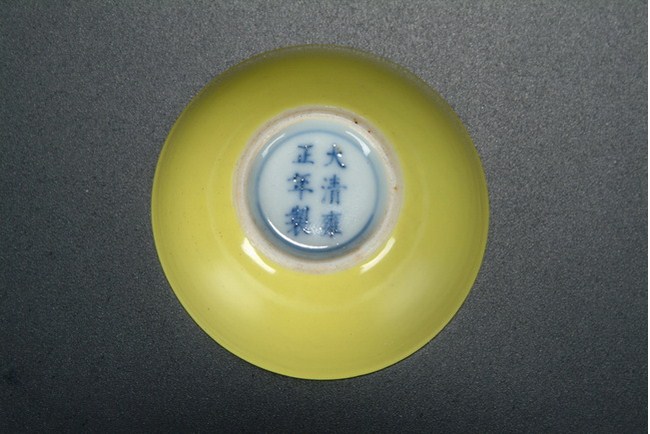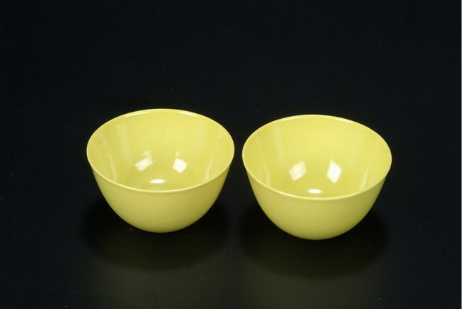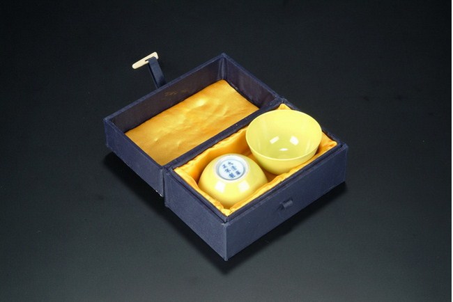The pair of wine cups were evenly glazed in rich lemon yellow color, and six characters "YONGZHENG" mark at the bottom.