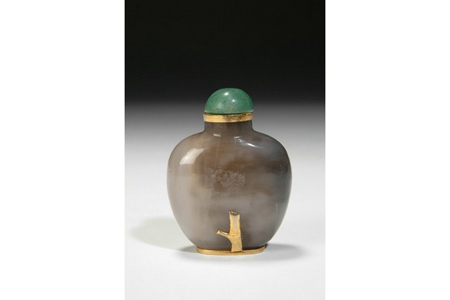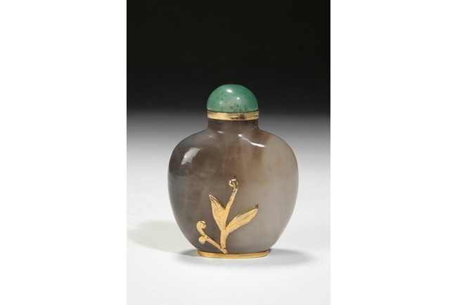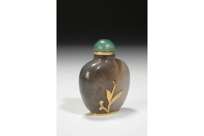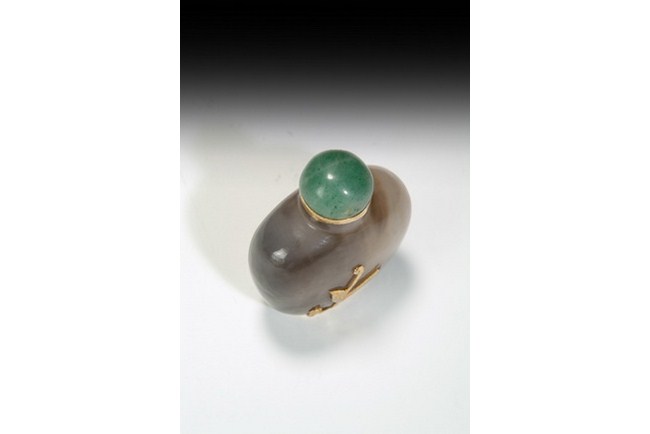 AN AGATE SNUFF BOTTLE    清 瑪瑙鑲金鼻煙壺