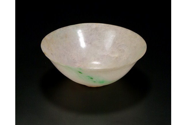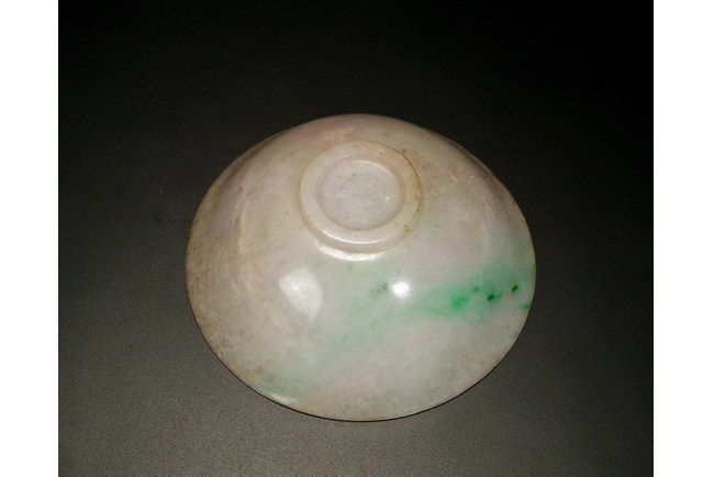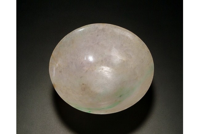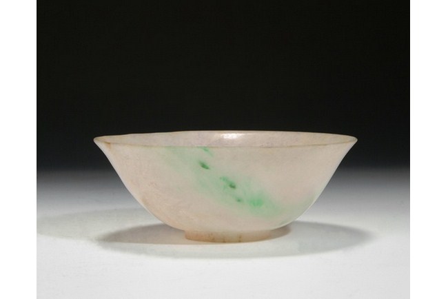 A thin walled bowl carved out of a solid piece of jadeite, with patches of apple green colors, and stone is of well translucent quality. Qing Dynasty period.