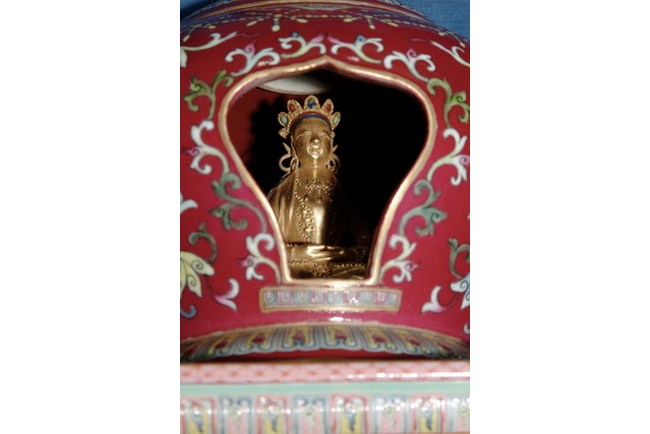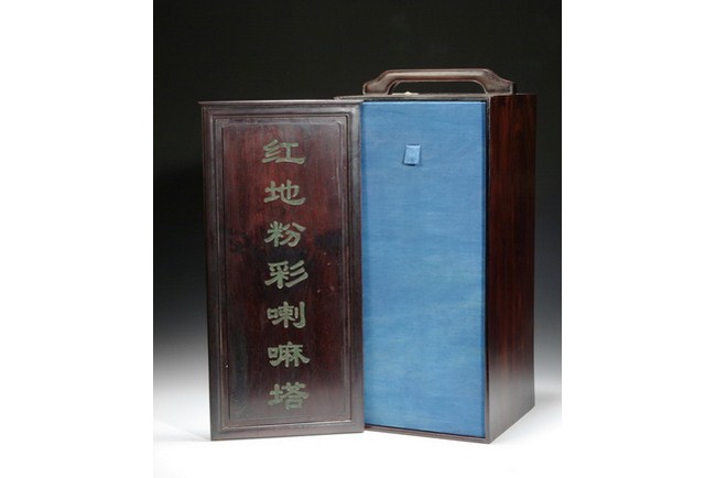 1941年由西藏布達拉宮活佛紮西·班傑送給英國商人James Warrick。1998年由James Warrick的孫子Oliver Warrick捐獻給洛杉磯觀音寺。此品為現觀音寺主持修惠法師提供。 1941, Tulku 紮西·班傑 of Potala Palace gifted this stupa to English merchant James Warrick. In 1998, James Warrick's grandson, Oliver Warrick, donated this stupa to Kawn Yin Temple of Monterey Park. Master Monk Xiuhui of Kawn Yin Temple provided this lot.