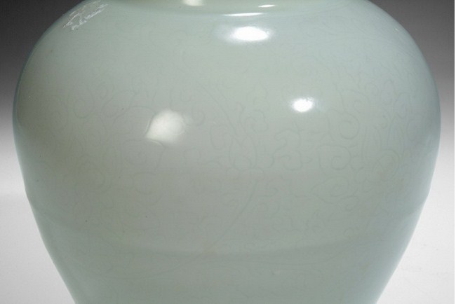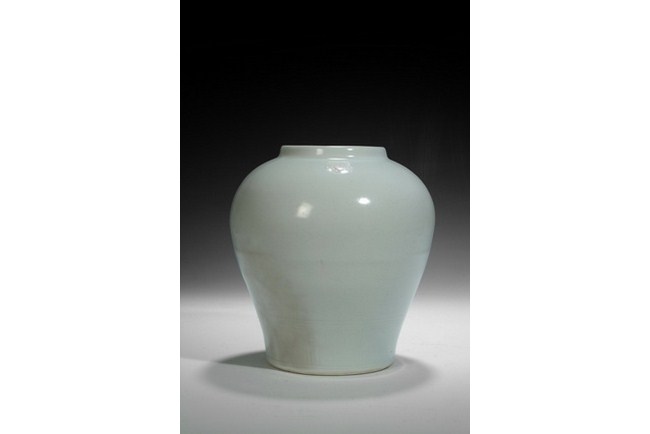 A white glazed Ming jar with Anhua, depicting blooming lotus and a band of lotus petals along the base. The piece was TL tested by the Chinese University of Hong Kong, and the result is consistent with the suggested date of manufacture. Ming Dynasty period.