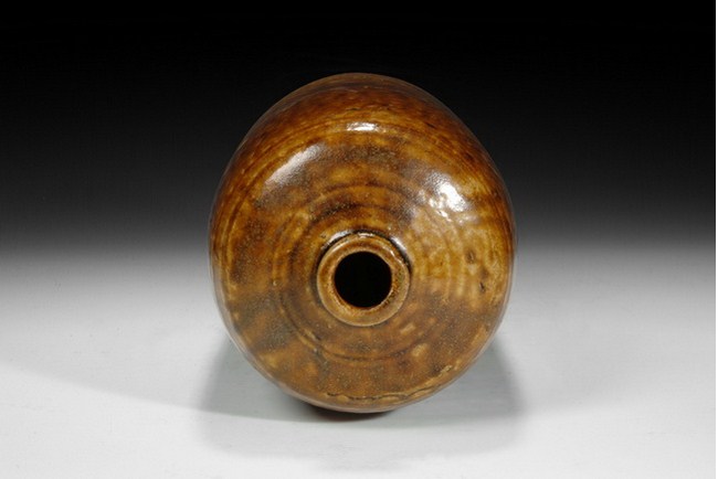 A sleeve shaped bottle covered overall with rich and flowing brown glaze. The unglazed body is burned in dark brown color. Ming Dynasty period.