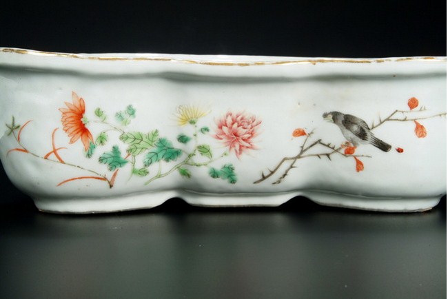 A narcissus flower pot in the shape of butterfly. The base bear a four character "TONGZHI" mark. Qing Dynasty period.