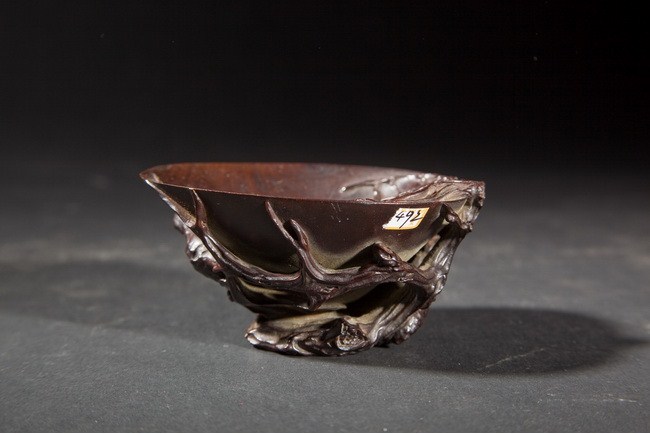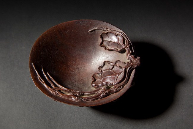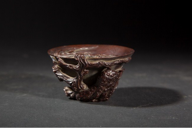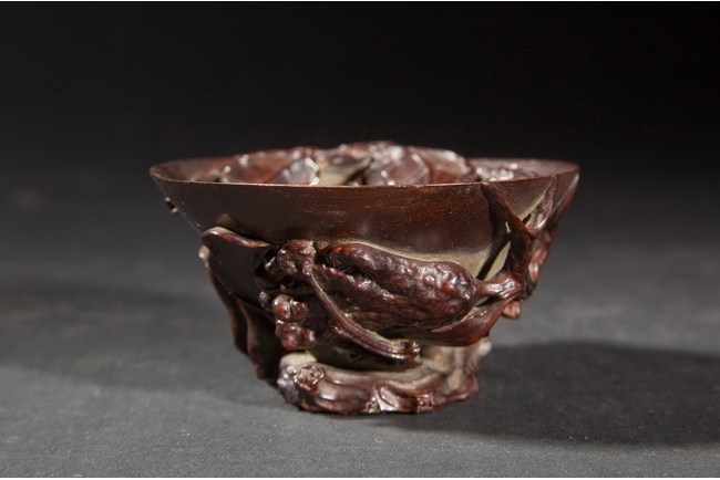 The libation cup was well carved, with Buddha's Hand plant carved on the outside, and some of its leaves extended into the inside of the cup. Qing Dynasty period.