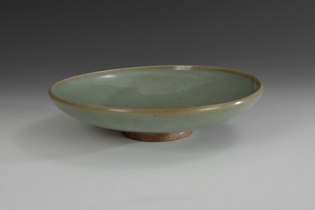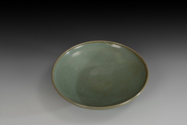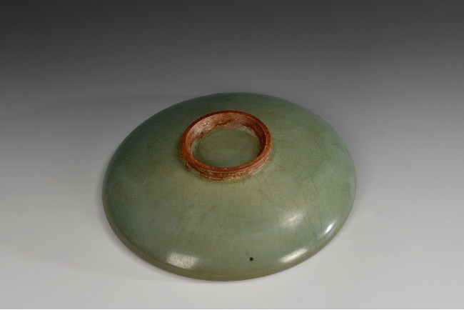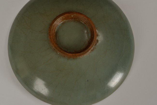 A shallow Junyao basin with bluish green glaze. The inside of the foot rim is also glazed. Song Dynasty period.