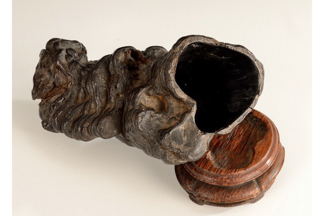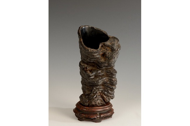 A Lingzhi fungus brush pot with both the interior and the bottom lacquered, in a conical shape, and bears the signature of Zhou Li. Qing Dynasty period.