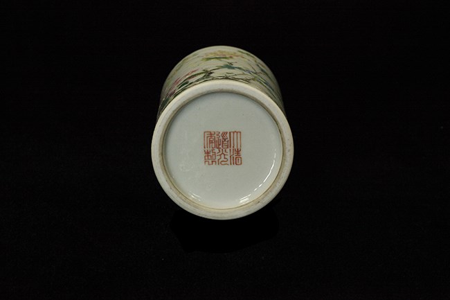 A SMALL FAMILLE ROSE BRUSH POT    清 大清道光年制 粉彩小筆筒