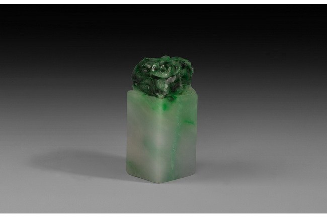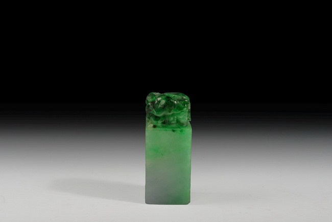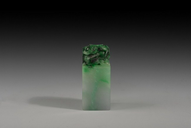 The stamp seal was carved from spinach jade, with rectangular base and carved vegetables on the very top. No carvings on the bottom.