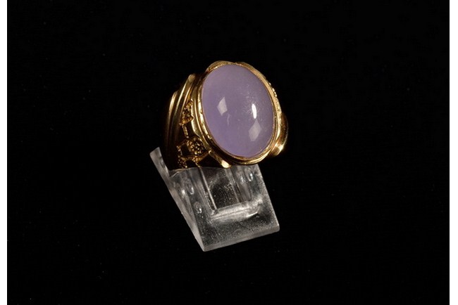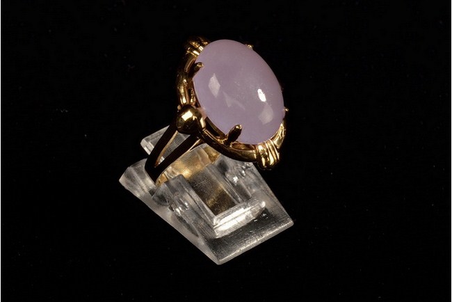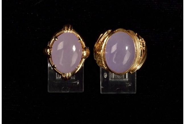 A pair of natural Lavender Jade rings, 14 k yellow gold.
