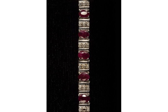 Natural ruby bracelet 16.01 carat, 7 1/2 in, 16 pieces, 14 k white gold.