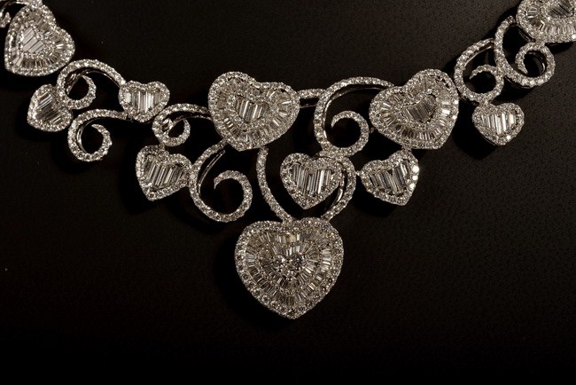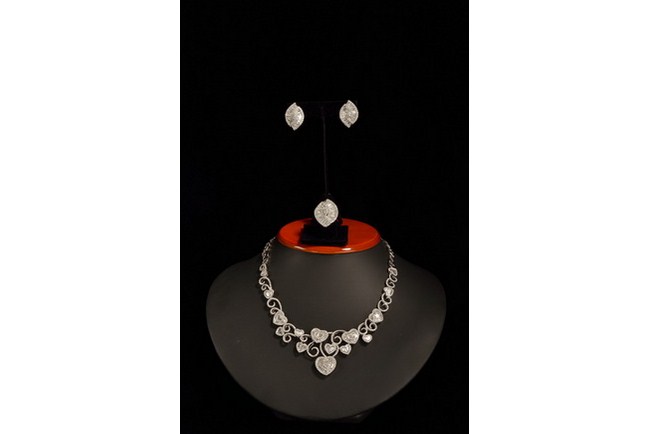 18k white gold diamond ring 3.08ct and 18k white gold diamond earring 4.38ct, 18k white gold diamond 9.68ct necklace.