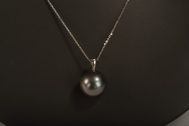 Tahitian black pearl 16 mm up, with 16'' white gold necklace.