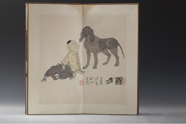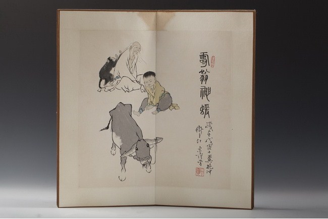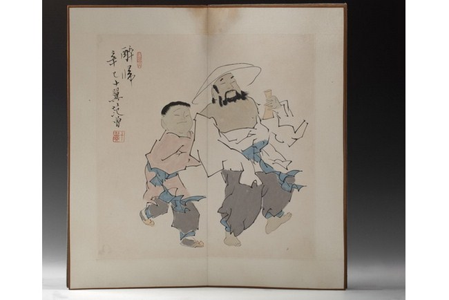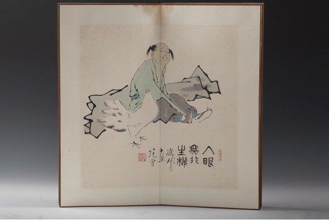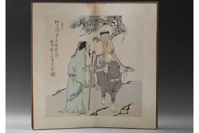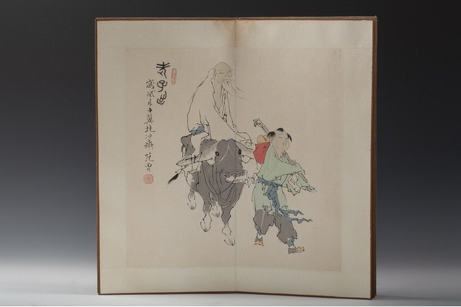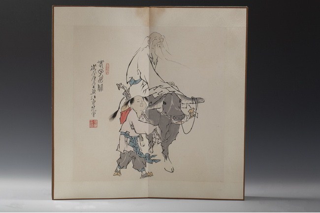A Chinese painting album with one panel of calligraphy and eight panels of human figures paintings, all bear the signature and stamp of Fan Zeng.
