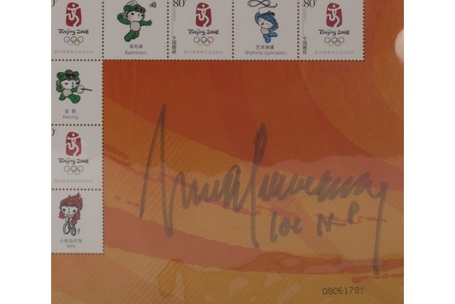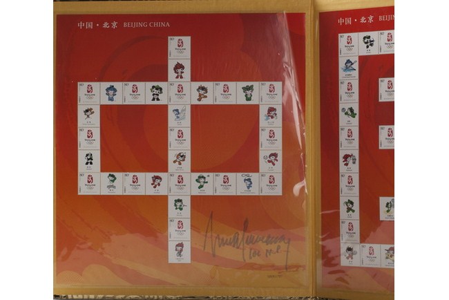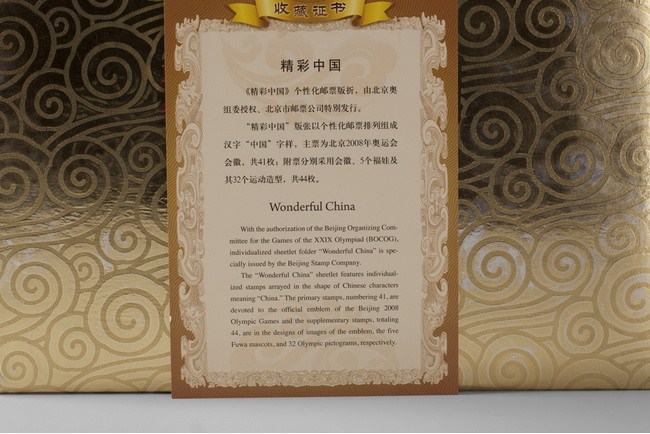 The collection of stamps was signed by the seventh President of the International Olympic Committee, Juan Antonia Samaranch. The "Wonderful China" stamp sheets features individualized stamps arrayed in the shape of Chinese characters meaning "China". Total stamps count to be 85.