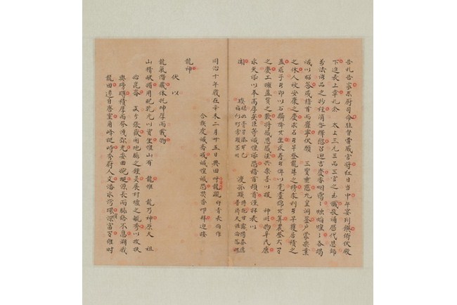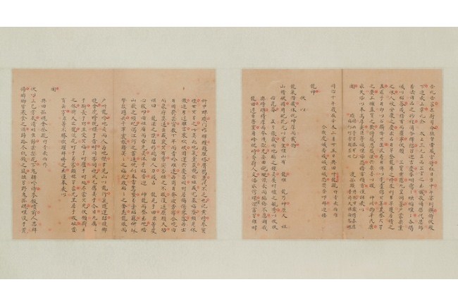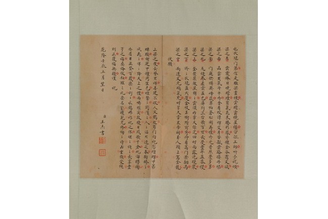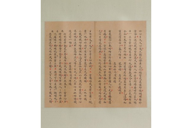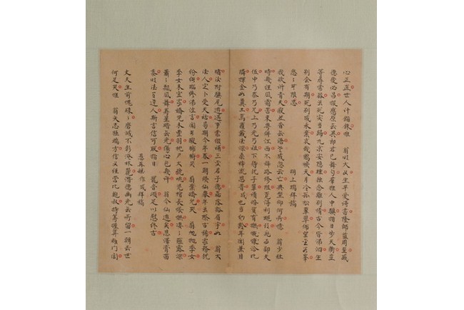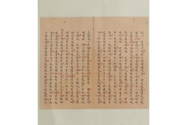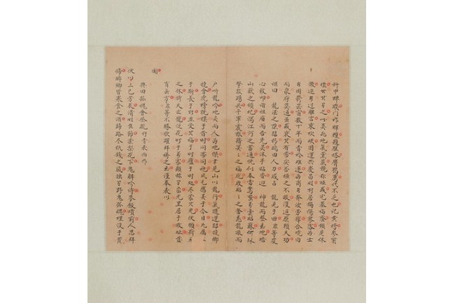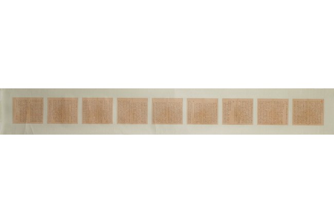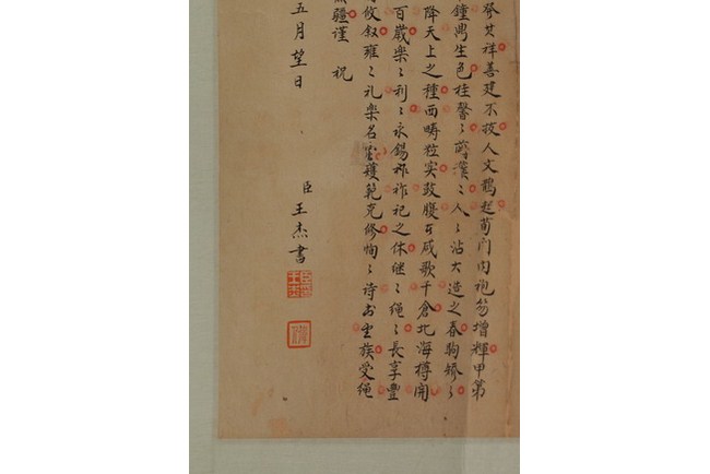 The document contains nine spreads, each with red annotation marks. The calligraphy document is attributed to "WANG JIE".