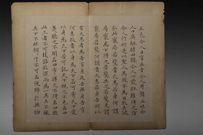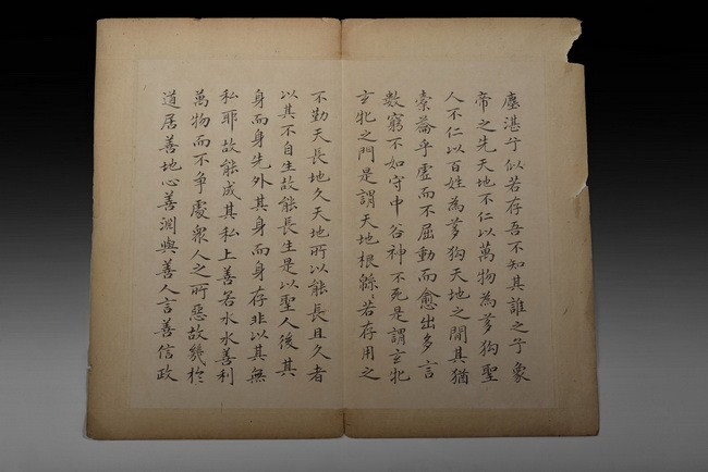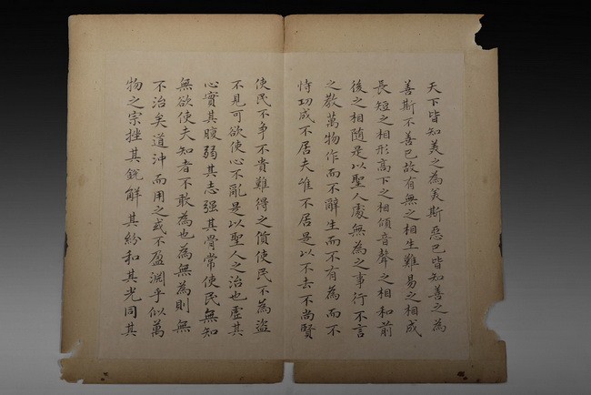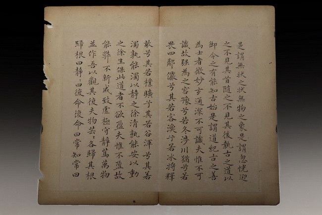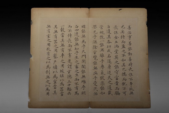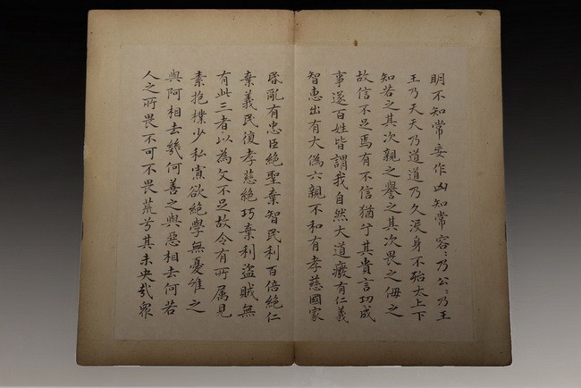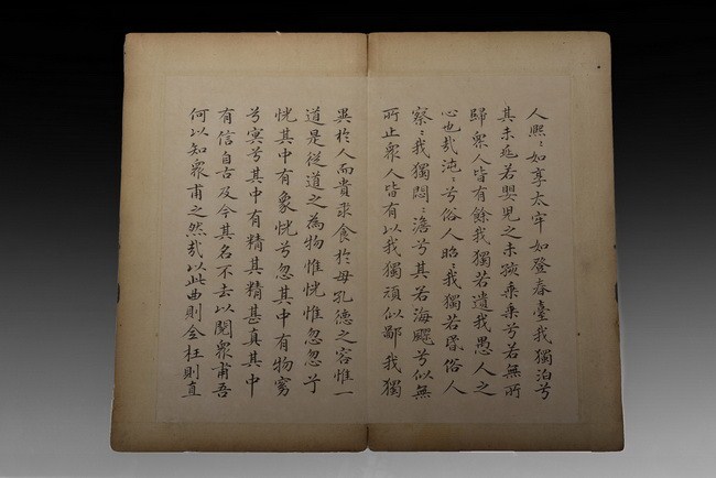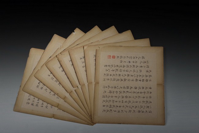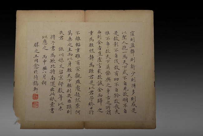 The set includes 8 spreads, 16 pages of calligraphy. It is missing the beginning pages. Attributed to "WANG TONGYU".