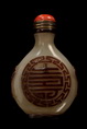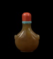清 子玉雕隨型鼻煙壺,珊瑚蓋