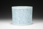 AN UNDERGLAZE BLUE AND WHITE CALLIGRAPHY BRUSH POT