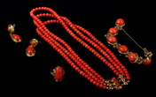 珊瑚項鏈,耳墜,戒指,手鏈一套