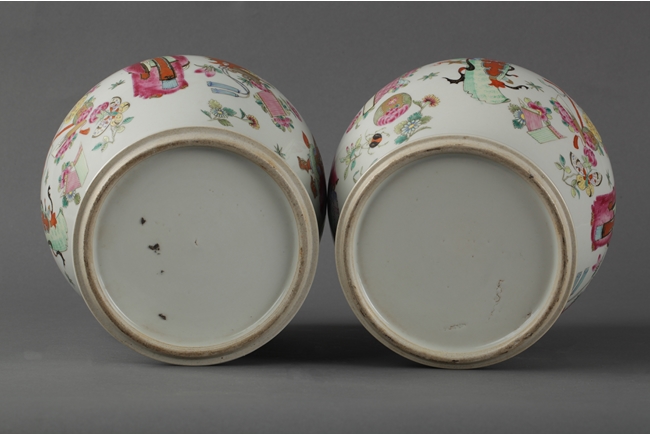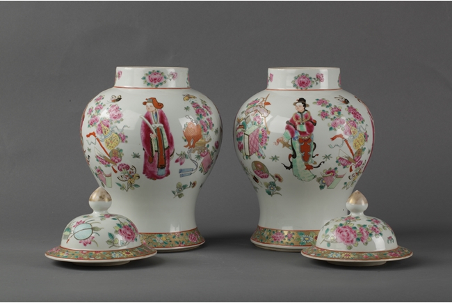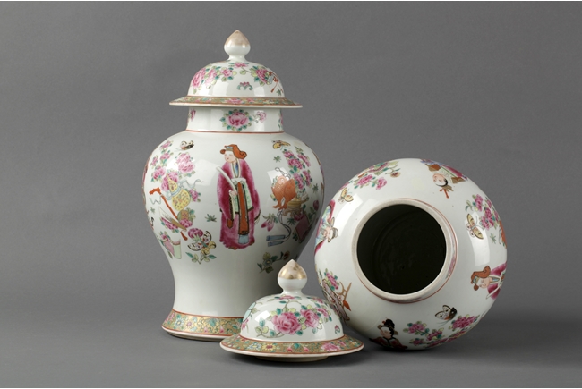 The jars were painted with four different people, peony flowers, butterflies, items symbolizing luck, and flower band patterns.
