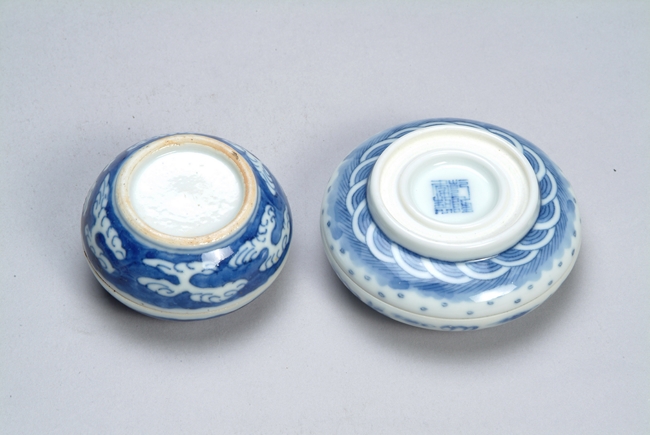 TWO BLUE AND WHITE LIDED JAR “乾隆”款 青花龍紋印盒