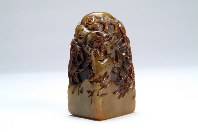 A CHINESE SHOUSHAN STONE CARVED SCENERY SEAL 壽山凍石雕山水印章,有款