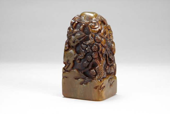 The soft stone seal depicts a deer wandering in the forest; four characters mark on the bottom.