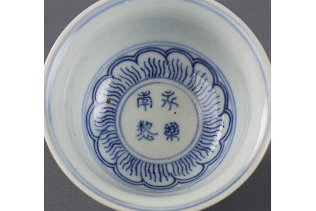 A BLUE AND WHITE SMALL CUP    永樂款 青花小碗