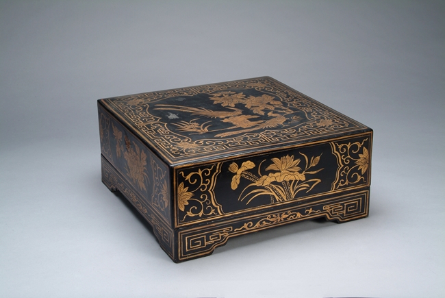 A CHINESE SQUARE LACQUER SWEET BOX    描金木糖盒
