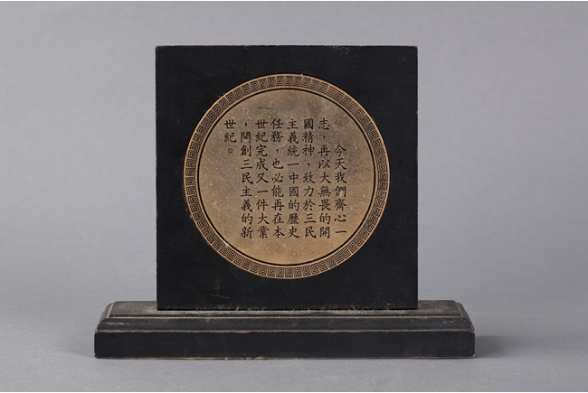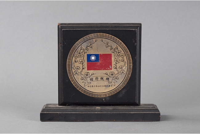 The award has the Taiwanese flag in the center, with the national plum flowers surrounding it, along with engraved words "Gifted By Office of the President", dated "October 10th, 74th Year of the Republic". On the back has engravings of an entire paragraph.