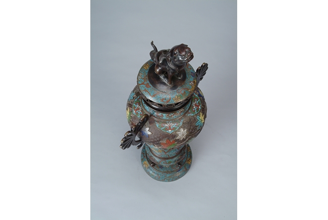 CHINESE CLOISONNÉ CENSER WITH MYTHICAL BEAST LID    景泰藍大香爐